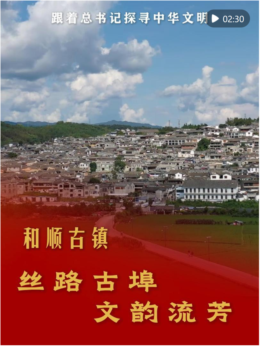 2020年1月19日,习近平总书记来到云南腾冲和顺古镇考察调研。和顺是古代川、滇、缅、印南方陆上“丝绸之路”的必经之地,保存了比较完整的明清古建筑群。考察中,习近平总书记走进和顺图书馆,了解古镇历史文化传承和振兴文化教育情况。