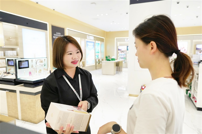 2020年11月入职时,符剑萍还是个对免税品一知半解的销售顾问。凭借旅游管理专业功底,加上第一份工作攒下的人力资源管理经验和一股子钻劲,3年多时间里,她从销售小白成长为区域骨干,再到如今的香化区店长。入职近5年,她多次拿下年度优秀员工、服务之星等荣誉。