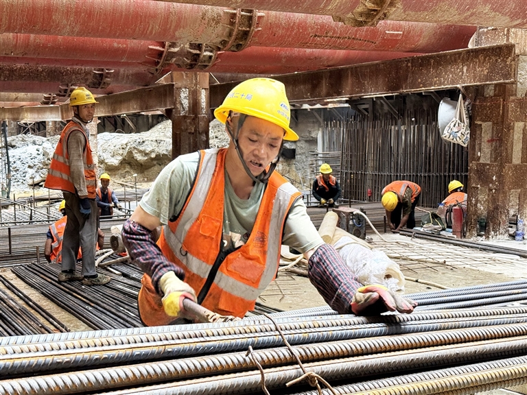 国庆中秋长假期间,三亚中央商务区20多个在建重点项目现场,4700余名建设者坚守一线,以汗水诠释奉献,用实干为城市发展添砖加瓦。其中,三亚河口通道工程项目抢抓工程“攻坚期”,全力冲刺本年度各项节点目标。项目以顶管施工为主线,同步加速推进A线、D匝道共坑段主体结构施工。现场20余台大型设备,200余名建设者锚定目标,抓安全、保质量,全面掀起施工快干的热潮,开启项目建设“加速键”。