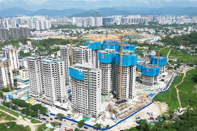 10月10日,三亚吉阳区海罗安置区(一期)项目施工现场塔吊林立,机器轰鸣,工人们在施工区域紧张有序地作业。钢筋、模板与机械臂共同勾勒出一幅繁忙的建设图景,展现出项目推进的强劲势头。