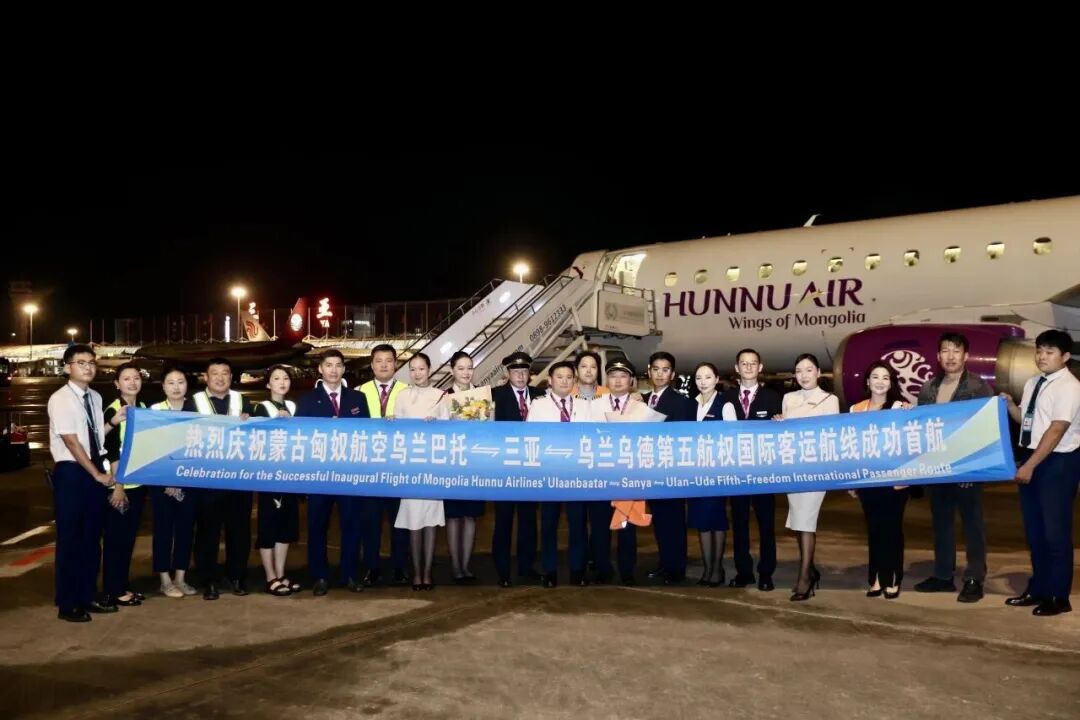 三亚新闻网10月11日消息(三亚传媒融媒体记者 李少云)10月10日19时30分,一架蒙古匈奴航空的航班从俄罗斯乌兰乌德飞抵三亚凤凰国际机场(以下简称“三亚机场”),在经停后继续飞往蒙古国乌兰巴托,标志着三亚第三条第五航权客运航线“乌兰巴托⇌三亚⇌乌兰乌德”正式开通,进一步拓展了三亚在国际航空网络中的枢纽功能。