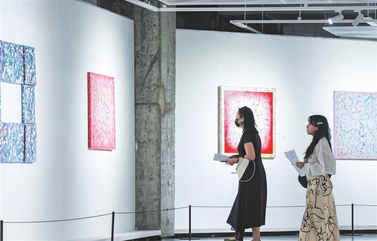 观众在饶有兴致地欣赏艺术作品。 冯晨阳 摄