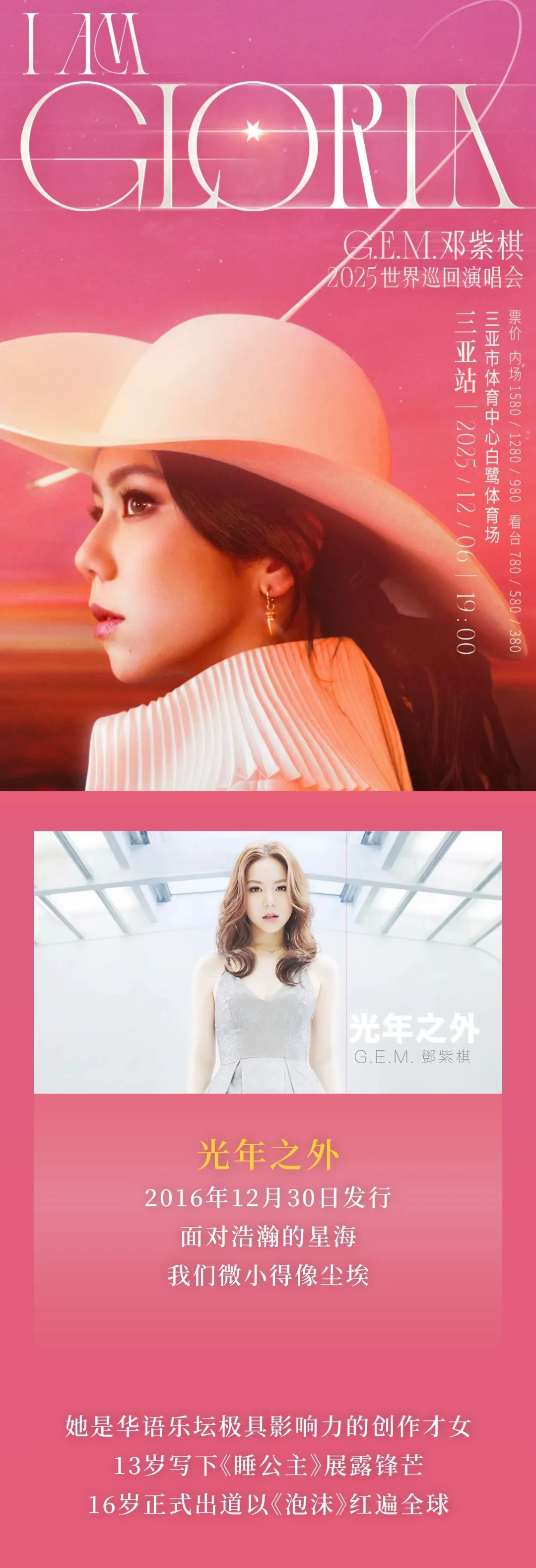 12月6日见!邓紫棋要来三亚开演唱会啦