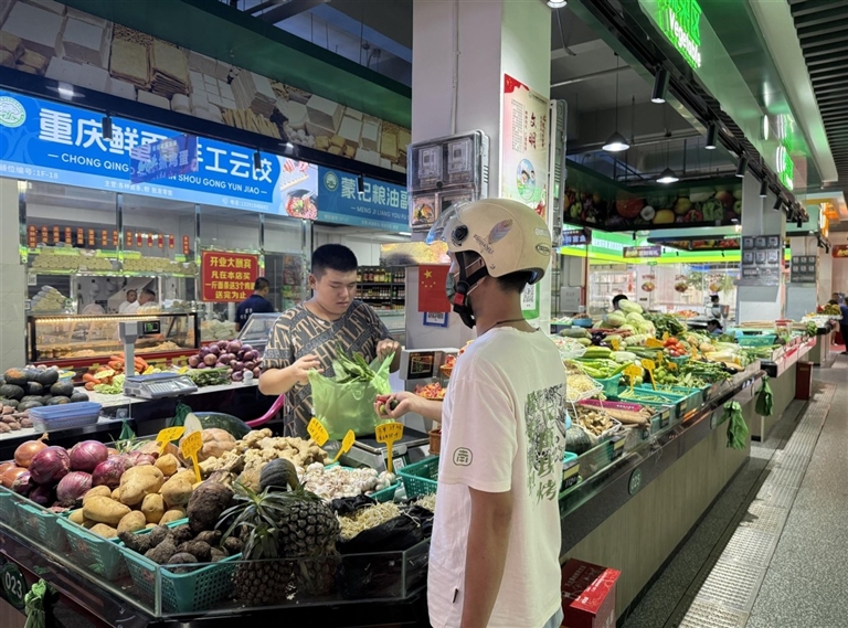 市民在榕根农贸市场购买蔬菜。冯晨阳 摄