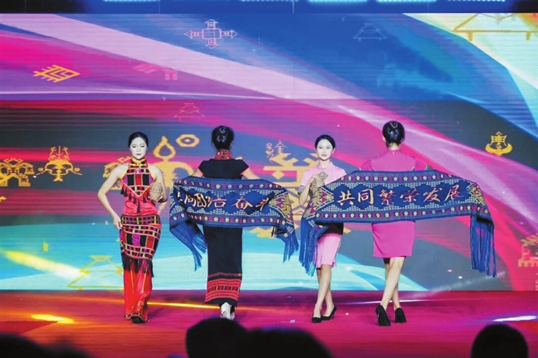 “秋季村晚”上的黎族服饰情景走秀《锦绣崖州》。 张慧膑 摄