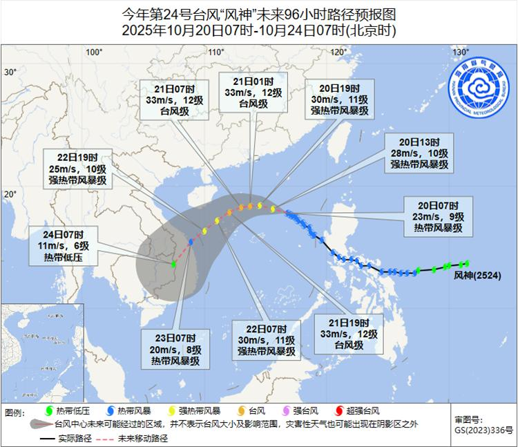 今年第24号台风“风神”(热带风暴级)已于19日傍晚进入南海东部海面,20日08时其中心位于北纬17.9度、东经116.6度,也就是在三沙市永兴岛东偏北方向约465公里的海面上,中心附近最大风力9级(23米/秒),七级风圈半径220~280公里。