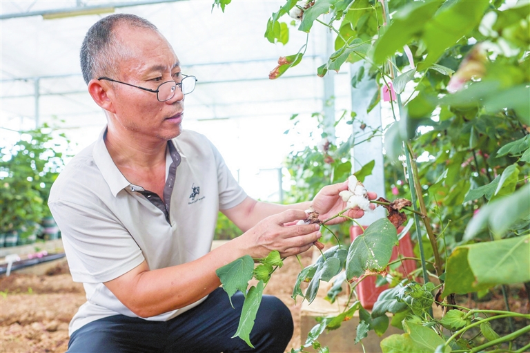 资源圃的秋日,一株引自澳洲的野生棉正绽放淡黄色花朵。刘方轻轻托起花苞解释:“它的棉酚合成基因能让害虫避而远之,或许未来能减少农药使用量。”这种看似微小的突破,背后是五年间上千次杂交试验、数万组数据比对的心血付出。