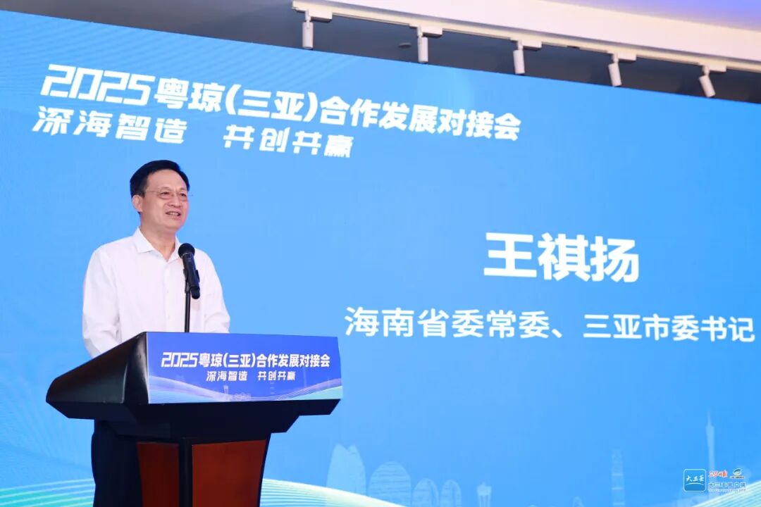 10月21日,“深海智造,共创共赢”2025年粤琼(三亚)合作发展对接会在广州举行,百余家企业齐聚一堂,共商合作大计、共谋发展新篇。省委常委、市委书记王祺扬出席并致辞。