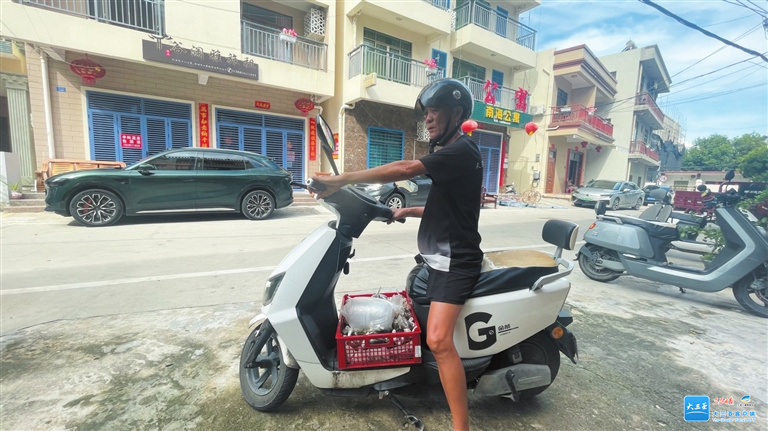 黎国献的外孙陈海涛,在马岭开了一家餐饮店。这是他准备为顾客送餐。