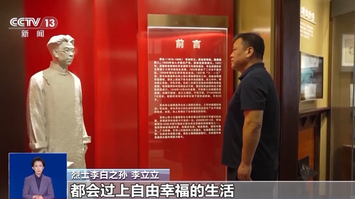 烈士李白之孙 李立立:我们所有人民都会过上自由幸福的生活,我想这就是他所期盼的。从现在的情况来看,不仅他所期盼的已经实现,而且我们国家不断地在发展,我们现在这个环境、我们的生活条件来之不易。特别是我们的先辈,他们付出了鲜血和生命,我们永远不能忘记他们。
