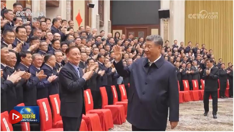 习近平等来到接见现场时,全场响起长时间热烈掌声。习近平向大家挥手致意,不时同代表亲切交流,并同大家合影留念。